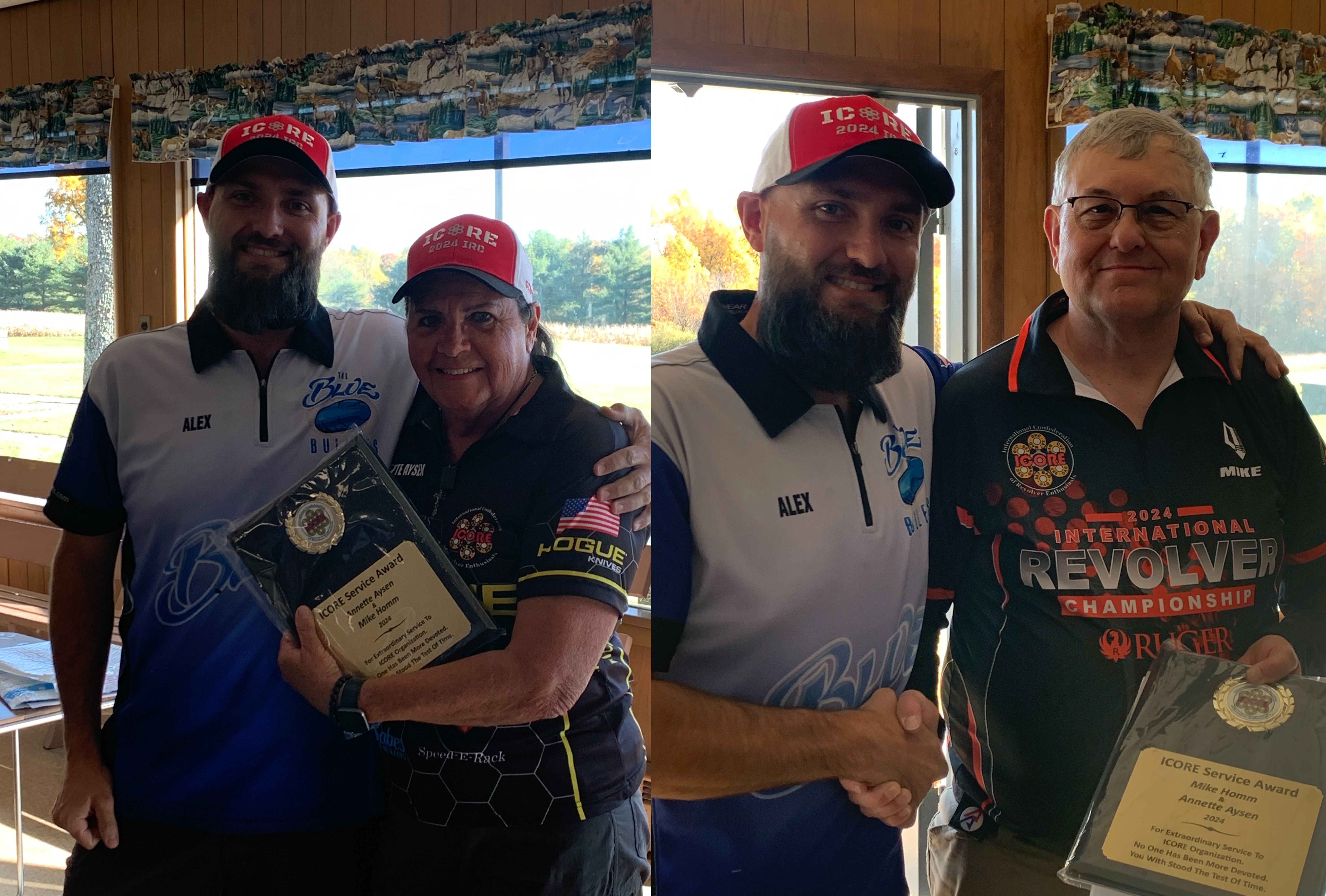 Paul Pluff, on behalf of the ICORE Board, happily honored Annette Aysen with an “On-The-Spot” award. As Annette would say … “too many of our members go far beyond the call of duty not always known by the membership, and it is their love of the game and their dedication to the revolver community that keeps them working to keep our revolver sport going”. This completely describes Annette.